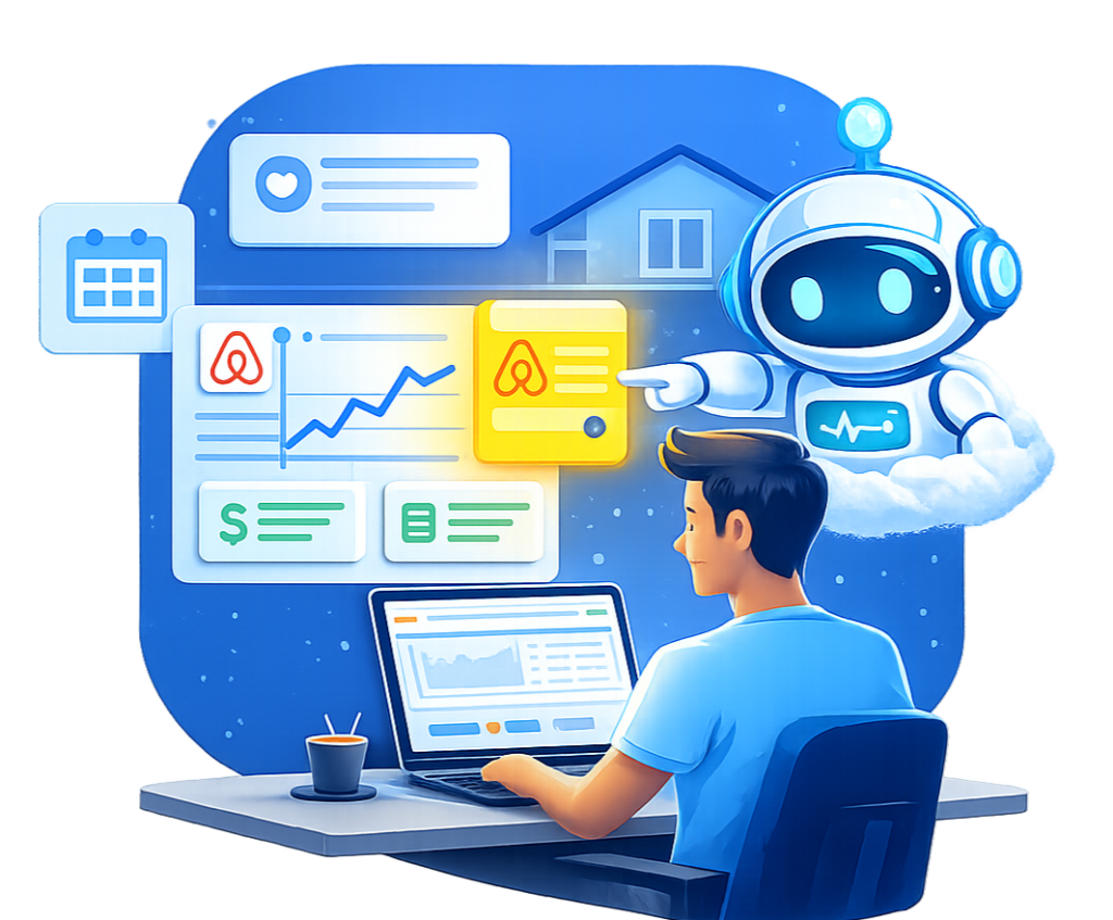 Conecta y optimiza la visibilidad y gestión de tu Airbnb Copiloto inteligente para anfitriones de Airbnb. Contactar Asesor Haz clic aquí Convierte la gestión de tu propiedad en un sistema claro y rentable Más control operativo, menos improvisación Más control operativo, menos improvisación